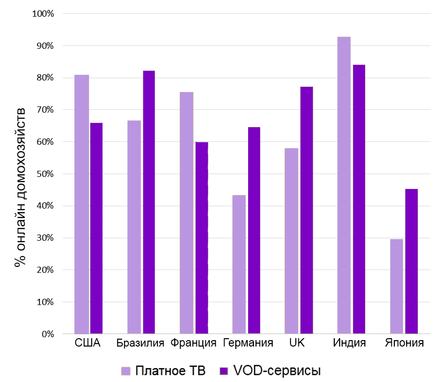 Зато в Европе ситуация развивается куда менее драматично. Согласно отчету Kagan, подразделения S&P Global Market Intelligence, европейские клиенты используют SVOD-сервисы как дополнительный источник развлекательного контента, а не заменяют ими платное ТВ.
