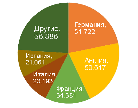Исследование Digital TV Research продемонстрировало, что общее количество абонентов сервисов по запросу в Западной Европе к 2025 году вырастет на 71 миллион, по сравнению с прогнозом на конец 2021 года. В одной только Германии их количество увеличится на 17 миллионов до 51,72 миллиона подписчиков, в Италии и Франции — на 10 миллионов до 34,38 млн и 21,19 млн соответственно, а в Великобритании — на 9 миллионов до 50,52 млн. Таким образом, как ожидают аналитики, крупнейший европейский рынок Великобритании уступит позиции Германии.