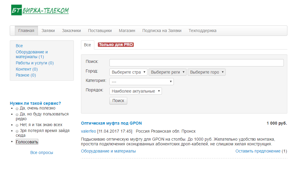 Надеюсь, что наша новая идея понравится участникам телеком-рынка и будет полезным инструментом для всех нас. Будем рады видеть всех. Со своей стороны, мы берём на себя обязанность искать и привлекать на площадку новых поставщиков и заказчиков, ну и, конечно, следить за порядком.
