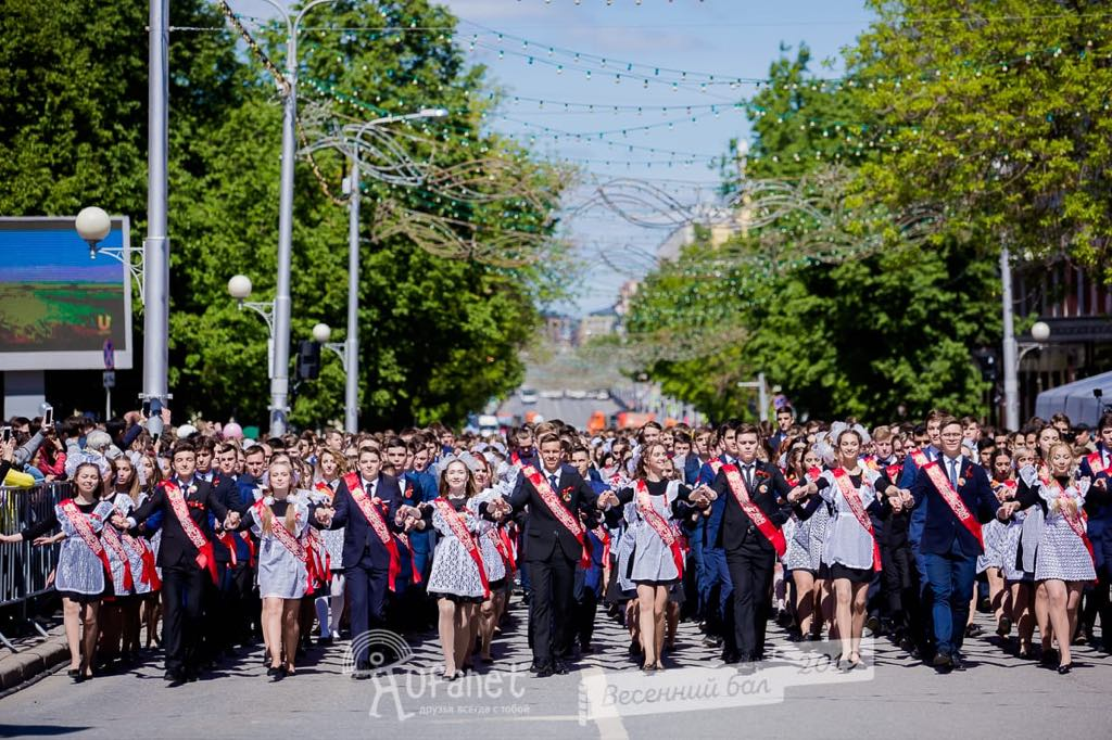 Сейчас "Весенний бал" – это мощное, грандиозное зрелище. Впервые мне довелось побывать на нём в Уфе. И, можно сказать, мне повезло, ведь именно в этом городе праздник традиционно проводится с наибольшим масштабом. Солнечное майское утро. Улицы центра еще пусты. Сотрудники "Уфанета" работали всю предыдущую неделю и в ночь перед праздником: уже построены несколько сцен на площади, установлены места для зрителей, гигантские звуковые фермы, нанесена специальная разметка, по которой будут идти выпускники. Остались только мелкие "доделки". Готовятся к открытию 6 танцевальных площадок, куда совсем скоро приедут лучшие танцевальные коллективы города, уже выставлена грандиозная "Аллея выпускников" – 213-метровая фотогалерея под открытым небом с фото ребят, их именами и мечтами о будущей профессии. На пересечении улиц репетирует музыкальная группа.