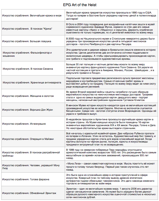 Как сокращают и переделывают. Вот так, продолжая требовать всё больше информации, вместо 14 разных названий эпизодов и разных описаний, редактор объединяет их все под одним названием и одним самодельным текстом.