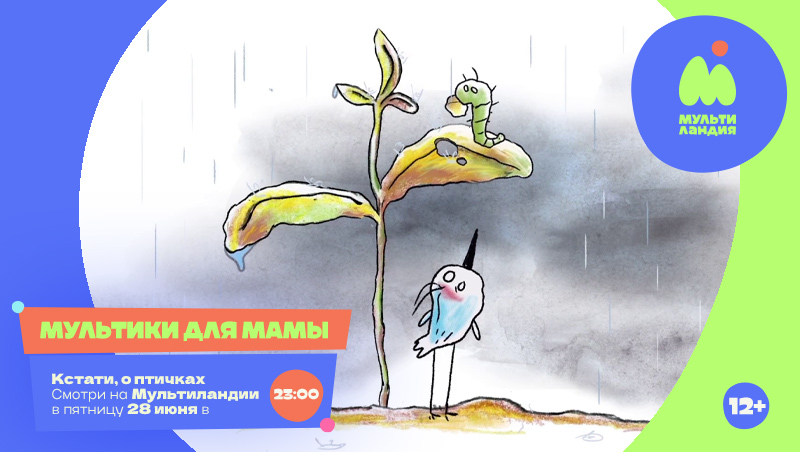 28 июня в 23:00 в рубрике "Мультики для мамы" — анимационный фильм "Кстати, о птичках". Весёлая и поучительная история о взаимоотношениях птички и червячка. Возрастная категория 12+.