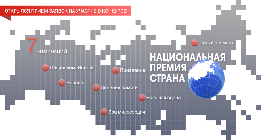 Главный проект телеканала — “Национальная премия “Страна” — ежегодный открытый творческий конкурс документального и короткометражного кино, работ российских тележурналистов, режиссеров, операторов и продюсеров. Его цель — продвижение лучших телевизионных проектов, авторского кино, открытие новых имен и сохранение лучших традиций теле- и кинопроизводства. Миссия проекта — показать отечественному зрителю подлинную и многообразную жизнь страны. Все работы конкурса показываются в эфире телеканала “Страна”, а лучшие авторы получают призы, дипломы и денежные премии.