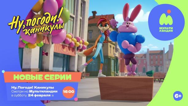 24 февраля в 16:00 на телеканале "Мультиландия" выходят новые выпуски любимого юными зрителями мультсериала "Ну, погоди! Каникулы". Это значит, что будет ещё больше удивительных приключений неугомонных героев — амбициозных планов Зайца, хитрых проделок Волка, челленджей и неожиданных поворотов.