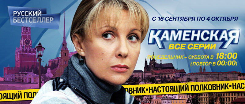 С 16 сентября зрители телеканала “Русский бестселлер” могут снова погрузиться в захватывающие детективные сюжеты Александры Марининой в сериале “КАМЕНСКАЯ”. Все серии, все сезоны будут в эфире с понедельника по субботу в 18:00 (повтор в 00:00).