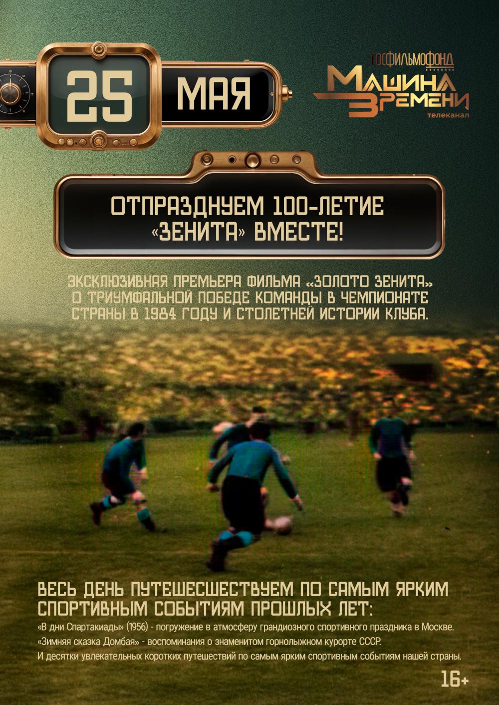 В честь празднования 100-летия футбольного клуба "Зенит" на телеканале "Госфильмофонд. Машина времени" состоится премьера документального фильма "Золото "Зенита"".