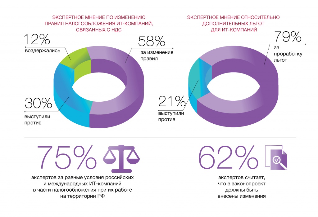 Экспертиза законопроекта проводилась в рамках созданной на базе ИРИ рабочей группы "Экспертиза законопроекта "НДС для IT-компаний" с привлечением экспертного совета ИРИ. В голосовании участвовали 179 профессионалов интернет-отрасли, среди которых представители компаний Mail.ru Group, "Яндекс", Rambler&Co, Google Russia, ABBY HQ, РАЭК, РОЦИТ, "Ростелеком", "ВымпелКом", "МегаФон", "Газпром-Медиа Холдинг", "СТС Медиа", "ВКонтакте", "Одноклассники", Avito, а также таких некоммерческих организаций как Агентство стратегических инициатив, Координационный центр национального домена сети Интернет, АРПП "Отечественный софт", Фонд информационной демократии и др.