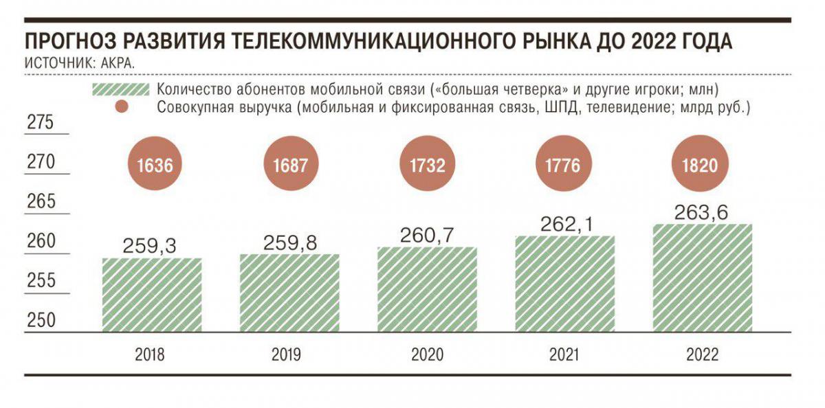 Ожидается, что произойдет увеличение объёма российского рынка телекоммуникаций в 2018 году на 3,7%, до 1,64 трлн рублей, в 2022 году - на 2,7%.