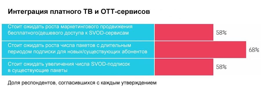Что касается платформ платного телевидения, 3Vision прогнозирует усиление внимания к интеграции сторонних OTT-сервисов. У рынка уже есть примеры успешной интеграции таких сервисов как Netflix, Discovery +, Disney и Amazon в экосистемы Sky, Canal + и Deutsche Telekom.