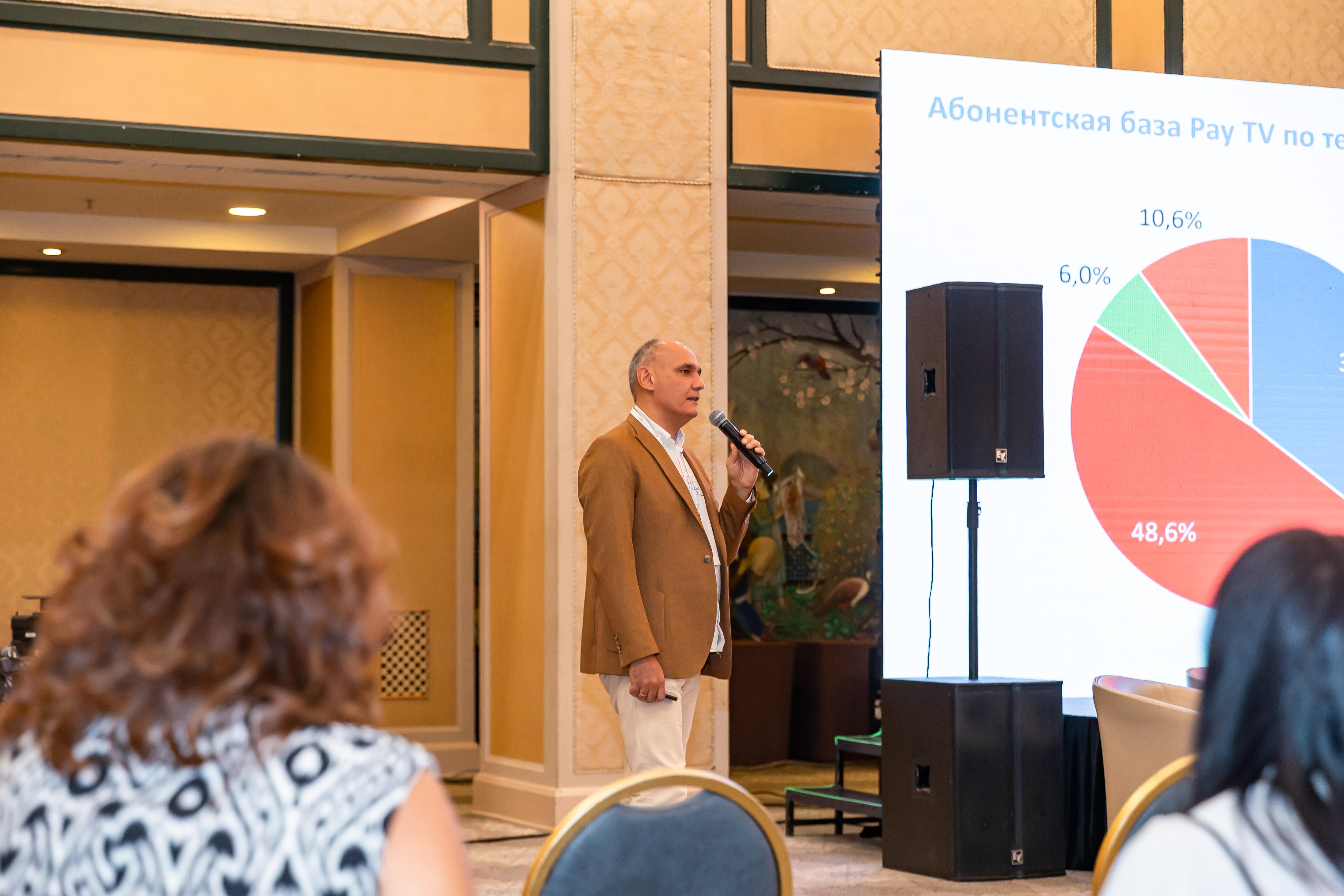 Особое внимание было уделено анализу телевизионной аудитории Узбекистана (TNS Узбекистан), трендам развития платного ТВ и онлайн-кинотеатров в Казахстане, вопросам монетизации и новым бизнес-моделям медиарынка, а также успешным кейсам региональных операторов. Кроме того, на конференции был представлен специальный доклад директора департамента новых технологий "J’son and Partners Consulting" Дмитрия Колесова о тенденциях развития рынка платного ТВ в Казахстане.