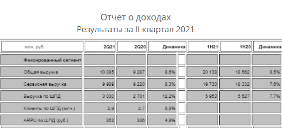 В фиксированном сегменте сервисная выручка продолжила расти, показав увеличение на 8,3% по сравнению с аналогичным периодом прошлого года, поскольку клиенты продолжали активно пользоваться услугами Домашнего интернета. Абонентская база клиентов ШПД увеличилась на 7% год к году. ARPU по ШПД вырос на 3,6% и составил 353 млн рублей.