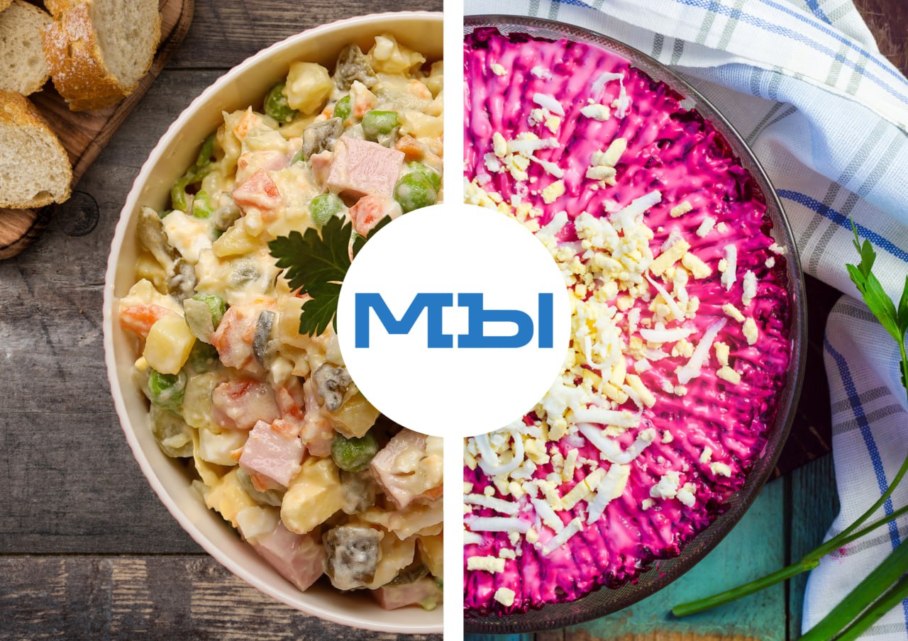 Вернуться в детство и попробовать любимые салаты "Оливье", "Мимоза" и "Селедка под шубой", а также мешочки с грибами предлагает телеканал МЫ.