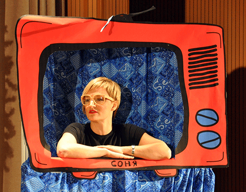 В роли Телевизора - руководитель выставки CSTB Ольга Пономаренко