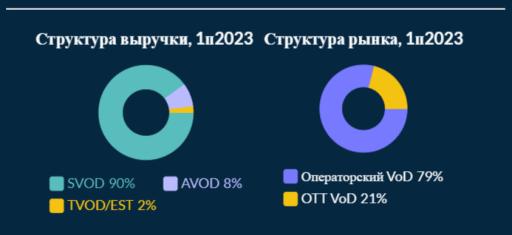 По данным аналитиков, доля рекламной выручки снизилась с 9% до 8% по сравнению с 1 полугодием 2022 года, при этом доля разовых платежей упала до 2%, в то время как годом ранее она составляла 9%. Эксперты объясняют это отсутствием голливудских киноновинок и удаления из библиотек зарубежного контента.