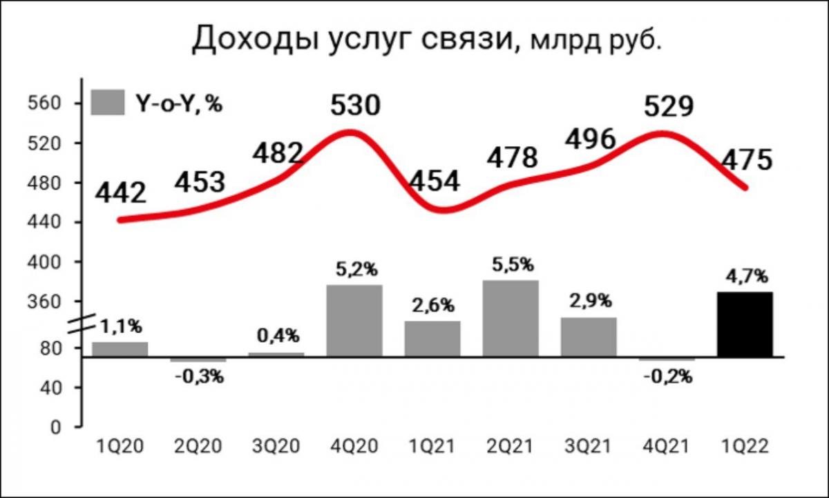 По итогам 1 квартала 2022 года доходы рынка составили 475 млрд рублей, что на 4,7% выше аналогичных показателей за прошлый год (454 млрд), сообщает Рустелеком. Обнародовали результаты только "Билайн" и МТС, поэтому можно предположить, что рост операторов Ростелеком и "Мегафон" находится на сопоставивом уровне.