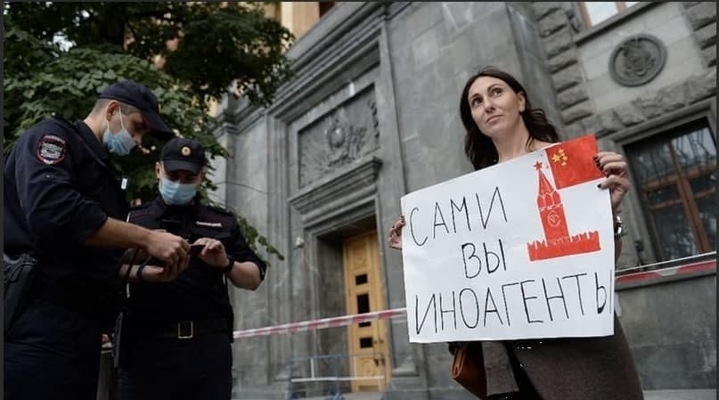 21 августа у здания ФСБ в Москве журналисты провели серию одиночных пикетов в знак солидарности и поддержки телеканала и против признания средств массовой информации иностранными агентами.