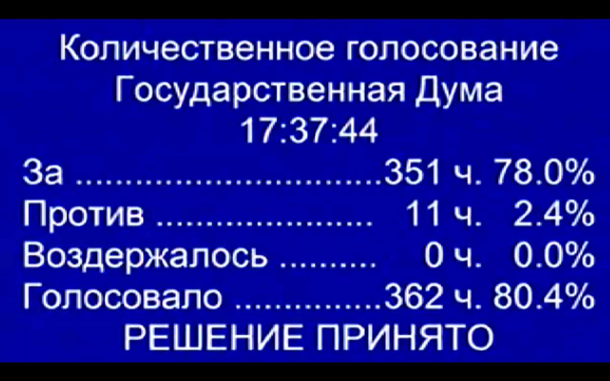 За закон в третьем чтении проголосовал 351 депутат, против высказалось 11 парламентариев.