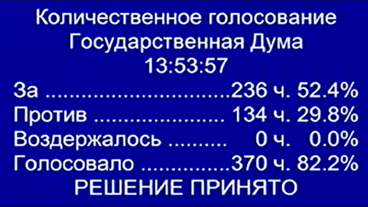Голосование во втором чтении за законопроект о запрете рекламы на платных каналах