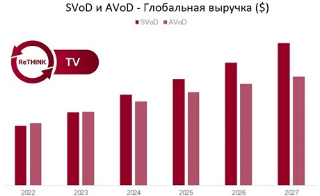 Напомним, ранее аналитики Rethink TV прогнозировали рост сектора SVoD относительно AVoD с 2023 года, несмотря на ожидаемый запуск Netflix услуги рекламного видео по запросу для решения проблемы замедления основных доходов.