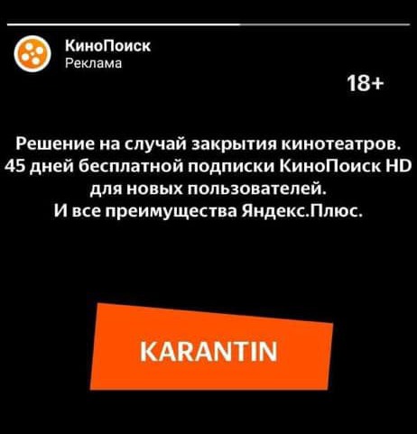 "Мы готовы участвовать в поиске решений в поддержку кинотеатров. "КиноПоиск HD" может предоставить платформу для проведения онлайн-сеансов кинотеатральных показов, с продажей на них билетов и структурой распределения выручки, максимально приближенной к кинотеатральному прокату. Мы понимаем, что все решения зависят от прокатчиков и кинотеатров, и открыты для диалога".