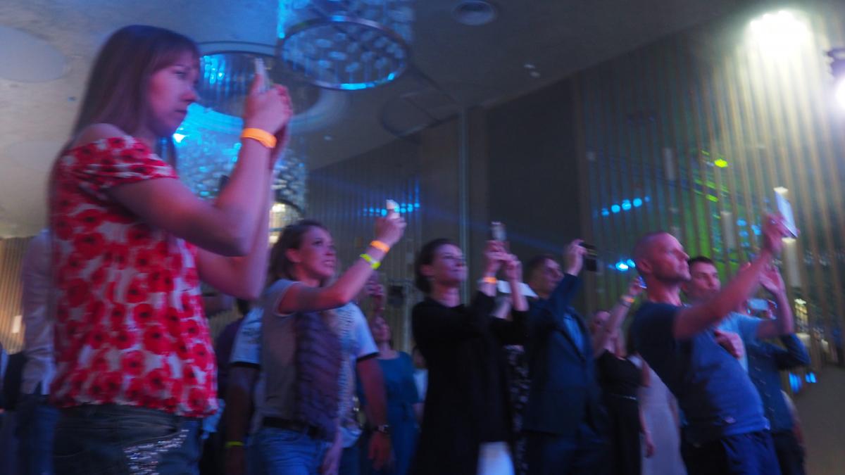 Отреагировали, разумеется, по-современному. Все побежали к сцене с телефонами =))