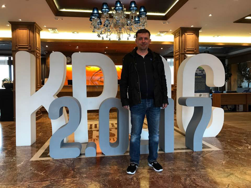 Дима Крылосов организовывал работу программного комитета, отвечает за организацию конференции. Сначала испугался, что на мою шевелюру не нацепить гарнитуру для выступления. Справились.