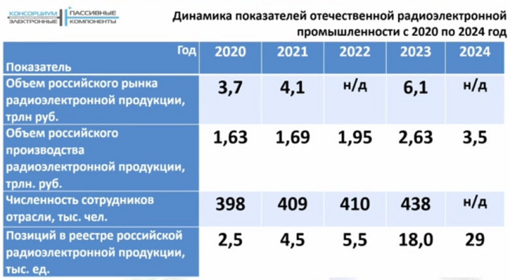 С приведенными данными согласны далеко не все представители рынка отечественной радиоэлектроники. По данным из открытых источников со ссылкой на Минпромторг, осенью 2024 года объем производства составлял 2,63 трлн рублей, а выручка за прошлый год составила не более 2,9 трлн рублей. По оценкам, основанным на опросах компаний отрасли, со второго полугодия 2024 года началось сокращение спроса и объемов производства, этот процесс продолжается и в 2025 году.