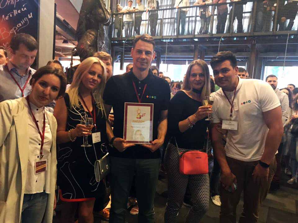 На фото - счастливый победитель, руководитель компании "Телесеть" Илья Прох и его креативная команда.
