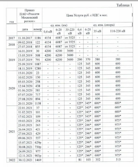 Однако в 2023 году ПАО "Россети. Московский регион" в прейскуранте изменила единицу измерения на "1 провод на опоре в месяц", что привело к кратному повышению стоимости на предоставление интернет-услуг для одного абонента.