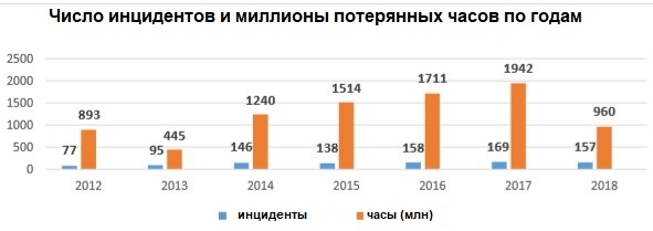 Также сильно влияние на ситуацию дефектных обновлений программного обеспечения, по данным отчета, в 2018 года они стали второй по частоте причиной инцидентов и вызвали 20% всех инцидентов.