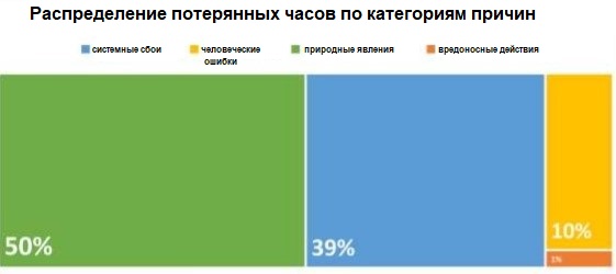 Важнейшим фактором являются перебои в подаче электроэнергии. Хотя только 15% инцидентов было вызвано ими, на них пришлось 496 млн потерянных часов пользователей.