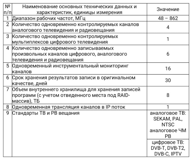 В частности, переносные блоки приема и анализа сигналов должны обладать длиной 422 мм, высотой 285 мм и шириной 227 мм, а также низким электропотреблением — до 400 Вт. Блоки будут работать в круглосуточном режиме и контролировать одновременно до четырех каналов аналогового телевидения и радиовещания. Одновременный инструментальный мониторинг может осуществляться сразу в отношении 16 каналов. Результаты записи в оригинальном качестве будут храниться 30 дней.