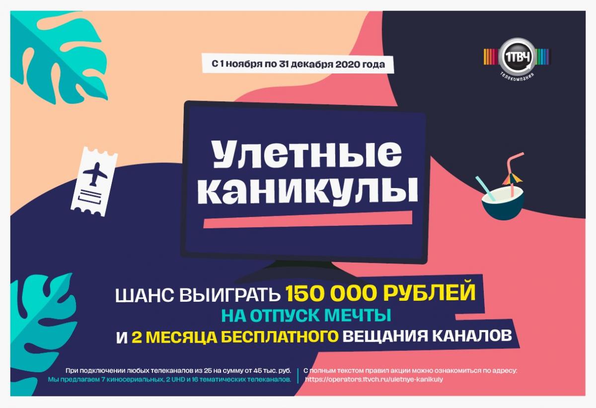 "Первый ТВЧ" проводит акцию, где каждый оператор платного ТВ, подключивший каналы телекомпании, получает шанс выиграть 150 000 рублей на "улетные каникулы" и два месяца бесплатного вещания.