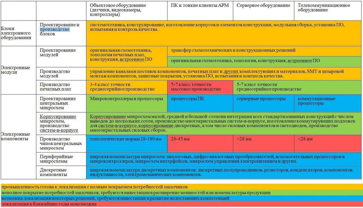 Из письма АРПЭ следует, что по ряду направлений электронной промышленности импортозамещение возможно уже сейчас, но по другим наблюдаются многолетнее технологическое отставание и необходимость финансирования. На некоторых направлениях замена иностранного оборудования российским в ближайшие несколько лет невозможна в принципе.