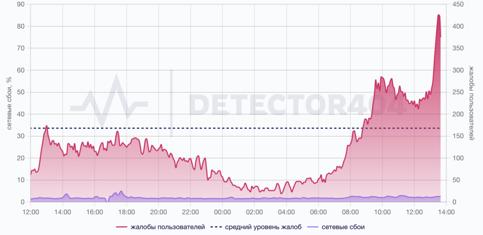 Российские пользователи уже с 9 февраля сообщают о некорректной работе мессенджера. За последние 24 часа 32% жалоб на Downdetector приходится на оповещения, 26% – на сбой мобильного приложения, 22% – на общий сбой, 15% – на сбой сайта и 2% – на сбой личного кабинета.