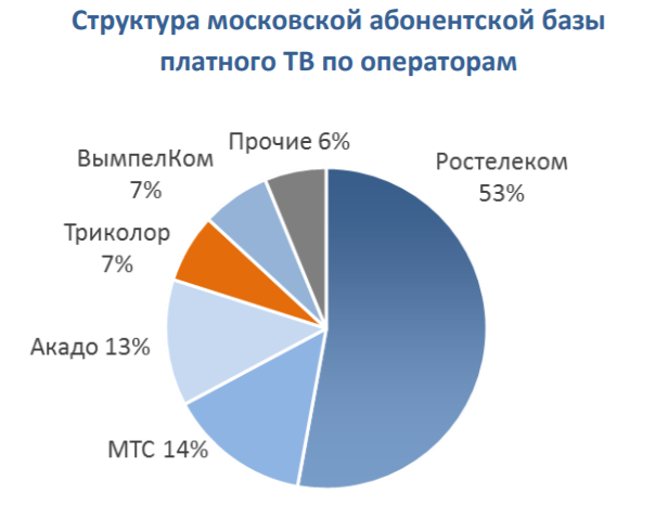 В Москве отток пользователей превышает новые подключения: за год размер абонентской базы платного ТВ сократился еще на 100 тысяч – в основном за счет оттока в кабельном ТВ.
