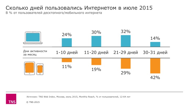 Интересно, что проникновение тех или иных устройств напрямую не влияет на время вовлеченности в интернет-активности. Это демонстрирует следующий график.