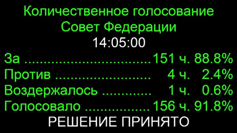 Напомним, Госдума приняла законопроект в третьем чтении 16 апреля. В голосовании принимали участие 375 депутатов (83,3%), из них за проголосовали 307 человек, против - 68 человек, воздержавшихся не было.