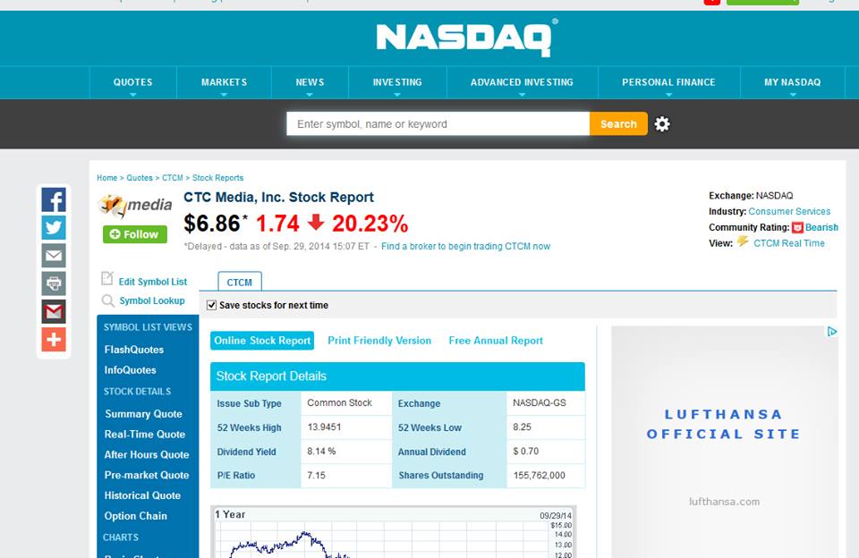 Между тем, 29 сентября акции холдинга упали в цене. Как сообщает газета "Коммерсант", на NASDAQ к 21.36 мск они подешевели на 19,77%, до 6,9 доллара за бумагу. Индекс NASDAQ в то же время снизился на 0,22%.