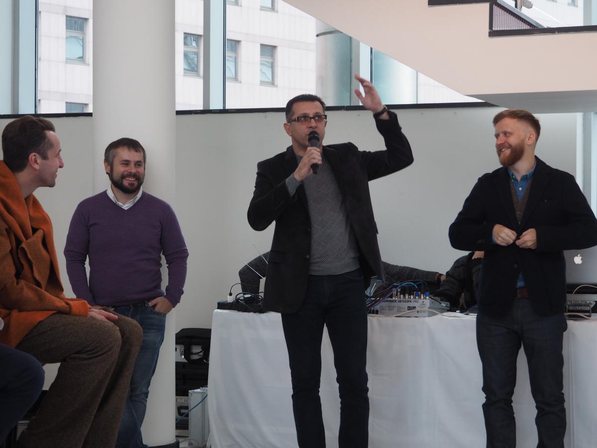 Презентация сериала "Паук". Слева направо - генеральный директор "Че" Лев Макаров, продюсер сериала "Паук" Юрий Шубаев, исполнительный продюсер "Че" Евгений Дьячков"
