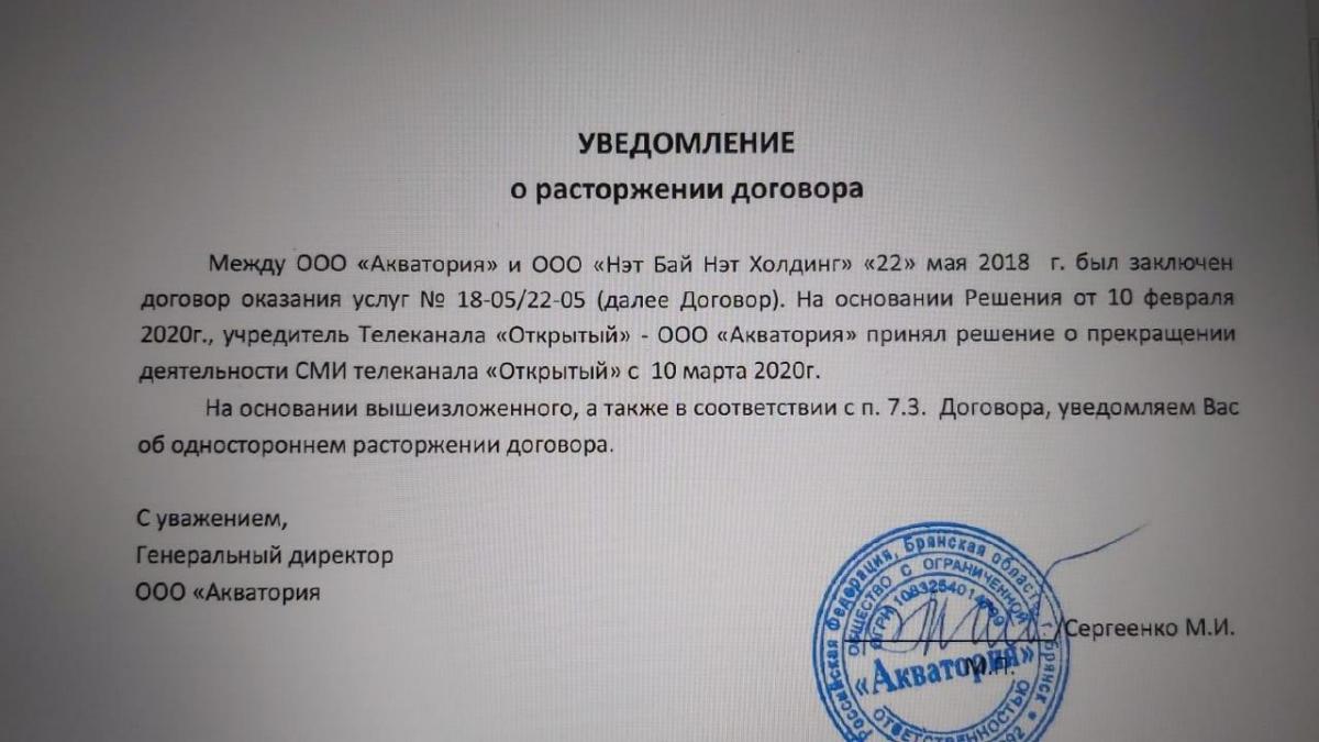 Музыкальный телеканал "Открытый HD", специализировавшийся на новой музыке и экспериментальных форматах, прекратил деятельность, ООО "Акватория", являющееся учредителем телеканала, разослало партнерам уведомления о расторжении договора в связи с прекращением деятельности.
