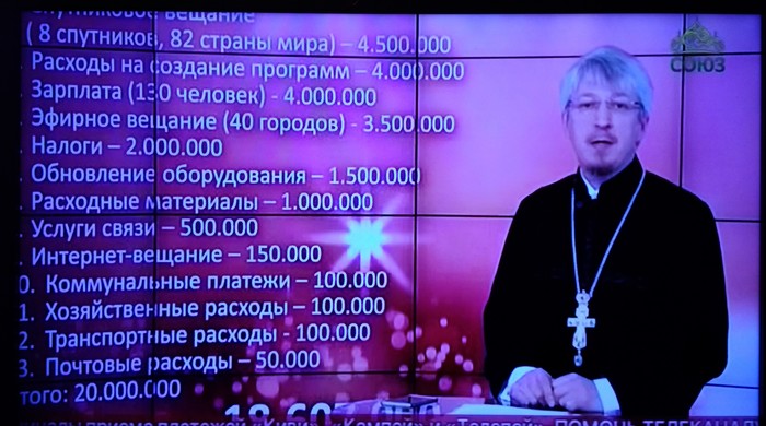 Стоит отметить, что сумма, поступившая на 28 ноября 2018 года, составляет 18,6 млн рублей. Задолженность канала с апреля по октябрь составляет почти 25,5 млн рублей. Именно поэтому, по мнению автора публикации, священнослужитель в эфире призывает зрителей помочь телеканалу дополнительными денежными пожертвованиями.