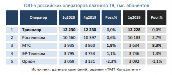 В то время как спутниковый оператор "Орион" в 1 квартале потерял более 70 тысяч пользователей, лидеру рынка "Триколору" удалось сохранить показатели на уровне конца 2019 года. Удержать абонентов, в частности, помог набирающий популярность сервис "Мультиэкран", позволяющий просматривать эфир спутниковых каналов на дополнительных устройствах — смартфонах, планшетах и Smart TV.