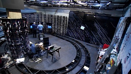 В студии установлены светодиодные экраны, которые позволяют наглядно иллюстрировать все детали. Один экран — полукруглой формы, длиной 7 м и высотой 2,5 м. Второй экран — цилиндрической формы высочайшего разрешения, и аналогов ему в России нет, рассказали в компании.