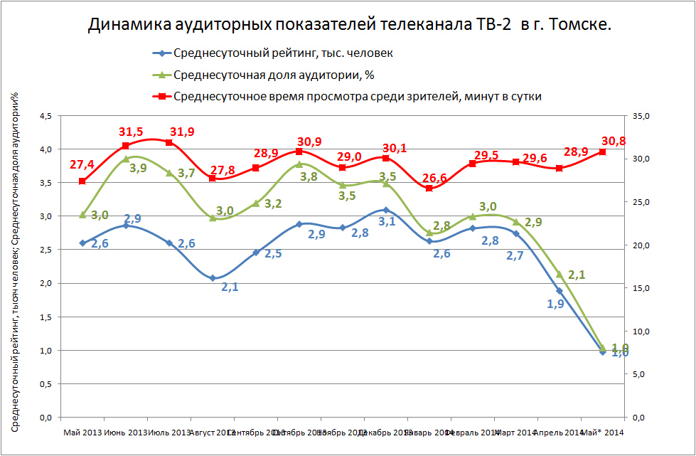 "Кабельщику" стало интересно — как ситуация с отсутствием ТВ-2 в эфире сказалась на рейтинге телеканала. Для этого редакция обратились за комментарием в TNS. По словам Марии Каменской, руководителя отдела исследования тематических каналов TNS Russia, "проблемы с дистрибуцией вызвали снижение среднесуточного охвата телеканала и, несмотря на стабильно высокий зрительский интерес (выражаемый во времени просмотра), привели к снижению его среднесуточного рейтинга и доли аудитории (показателей, производных от охвата и времени просмотра)".