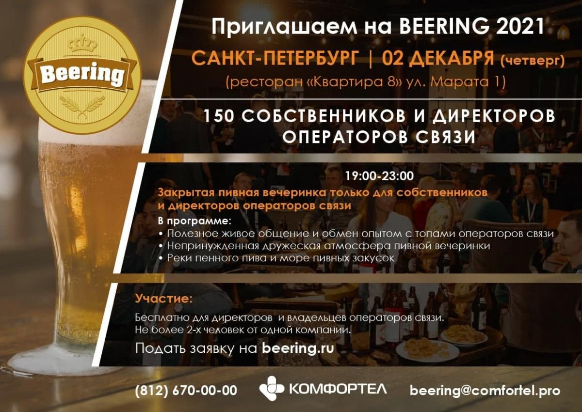 В четверг, 2 декабря, связисты Санкт-Петербурга соберутся на традиционный Beering в ресторане "Квартира 8" на ул. Марата 1.