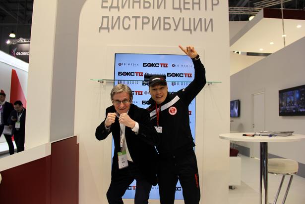 Первое фото мы назвали "Мегамонстры" - в одном кадре собрались три крупных производителя и дистрибутора телеканалов для платного ТВ: ПКВС, "Ред Медиа" и, конечно, вы узнали эту красивую рубашку "Сигнал Медиа" :)
