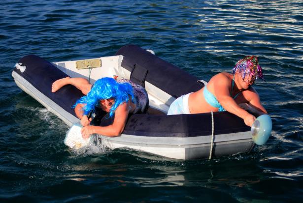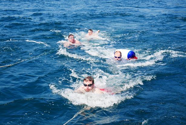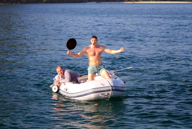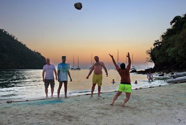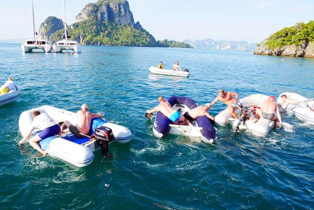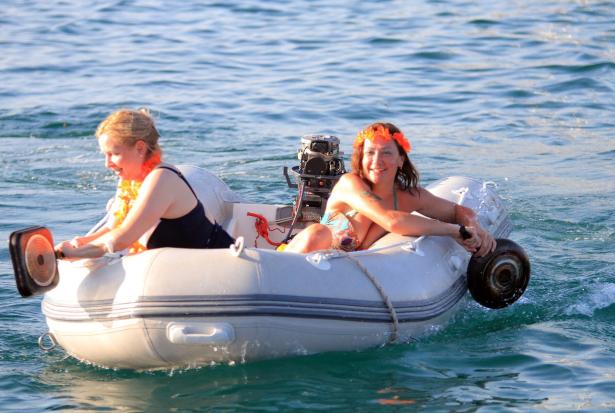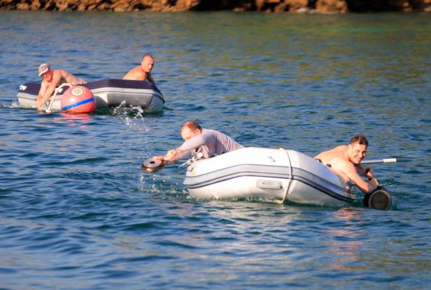 Впрочем, яхтенные профессионалы скорее назвали бы ее не просто регатой, а квестом, поскольку гонялись команды на комфортных, хотя и парусных катамаранах, а кроме того участники приняли участие в целой куче соревнований - от кулинарии до гонок на "тузиках" со сковородками в качестве весел.